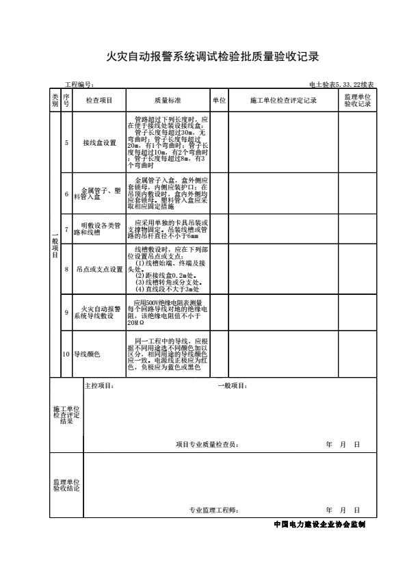 表格名称:电土验表5.33.22 火灾自动报警系统调试质量验收记录