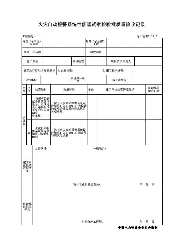 表格名称:电土验表5.33.51 火灾自动报警系统性能调试检验批质量验收记录