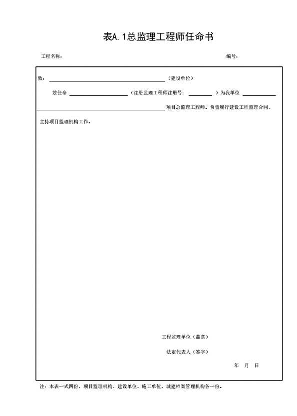 A类表 武汉建设工程监理规程用表(工程监理单位用表)