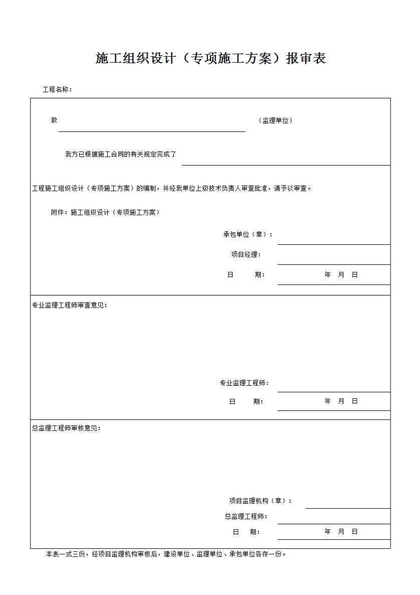 表格名称:施工组织设计(专项施工方案)报审表