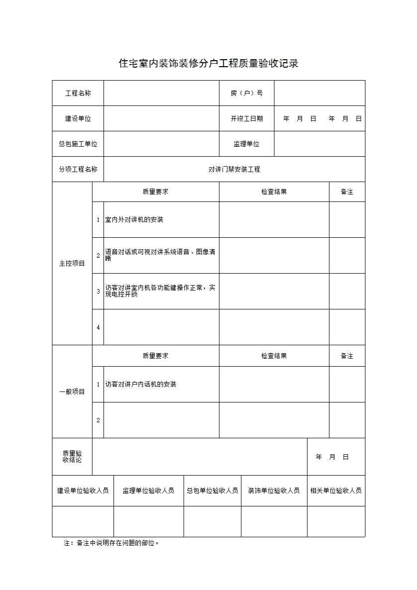 表格名称:3 对讲门禁安装工程对讲门禁安装工程质量验收记录