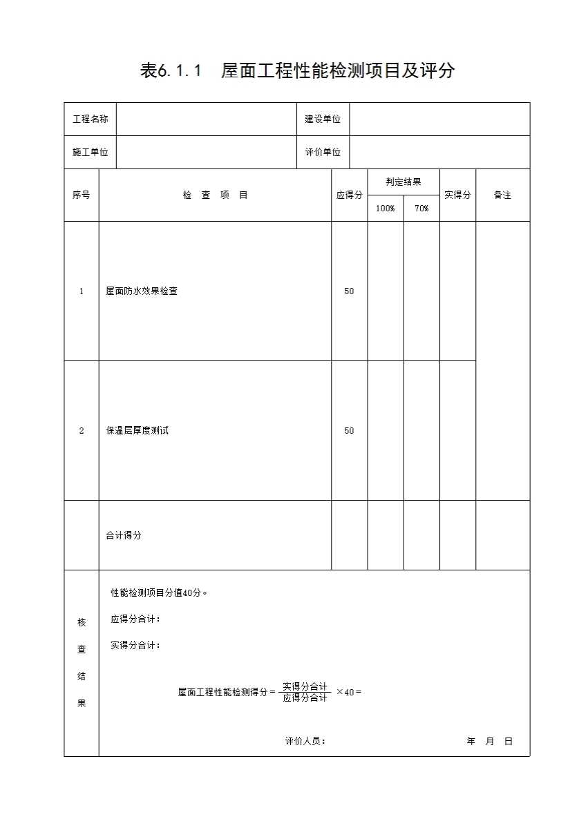 表格名称:表6.1.1 屋面工程性能检测项目及评分