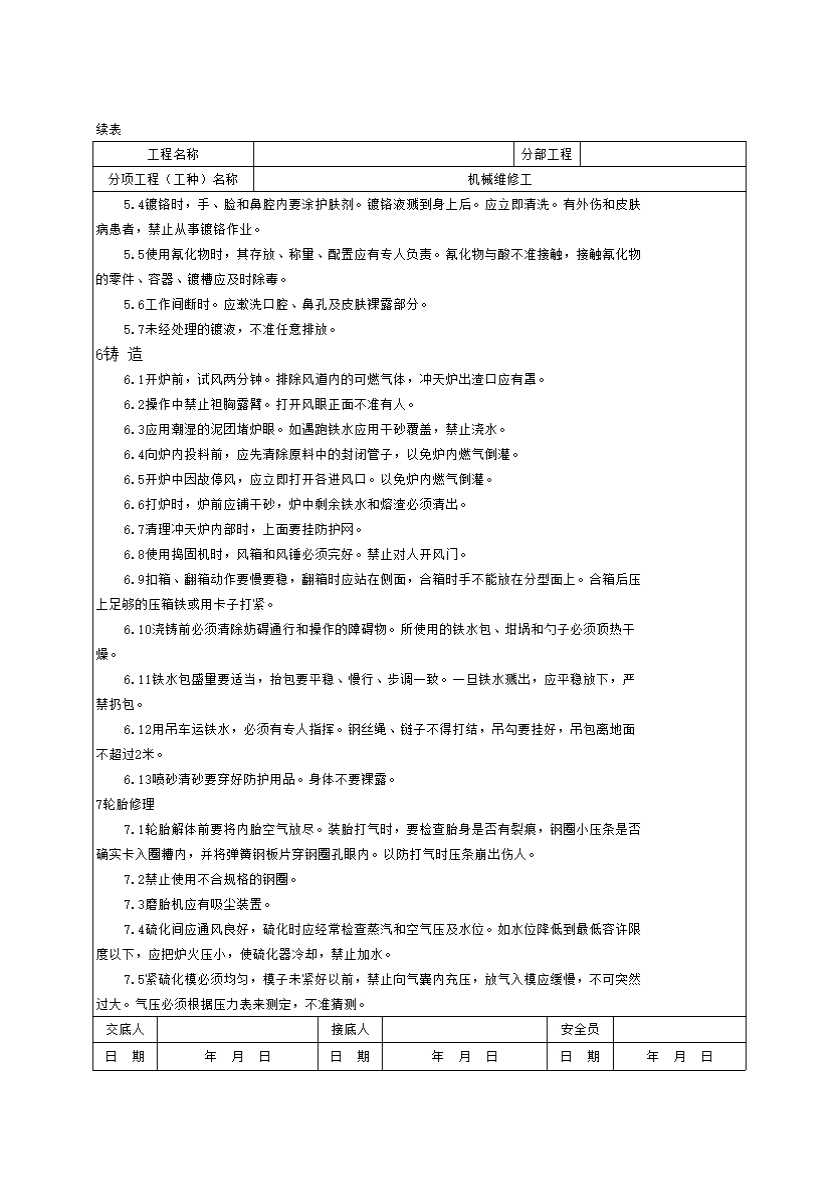 表格名称:034机械维修工