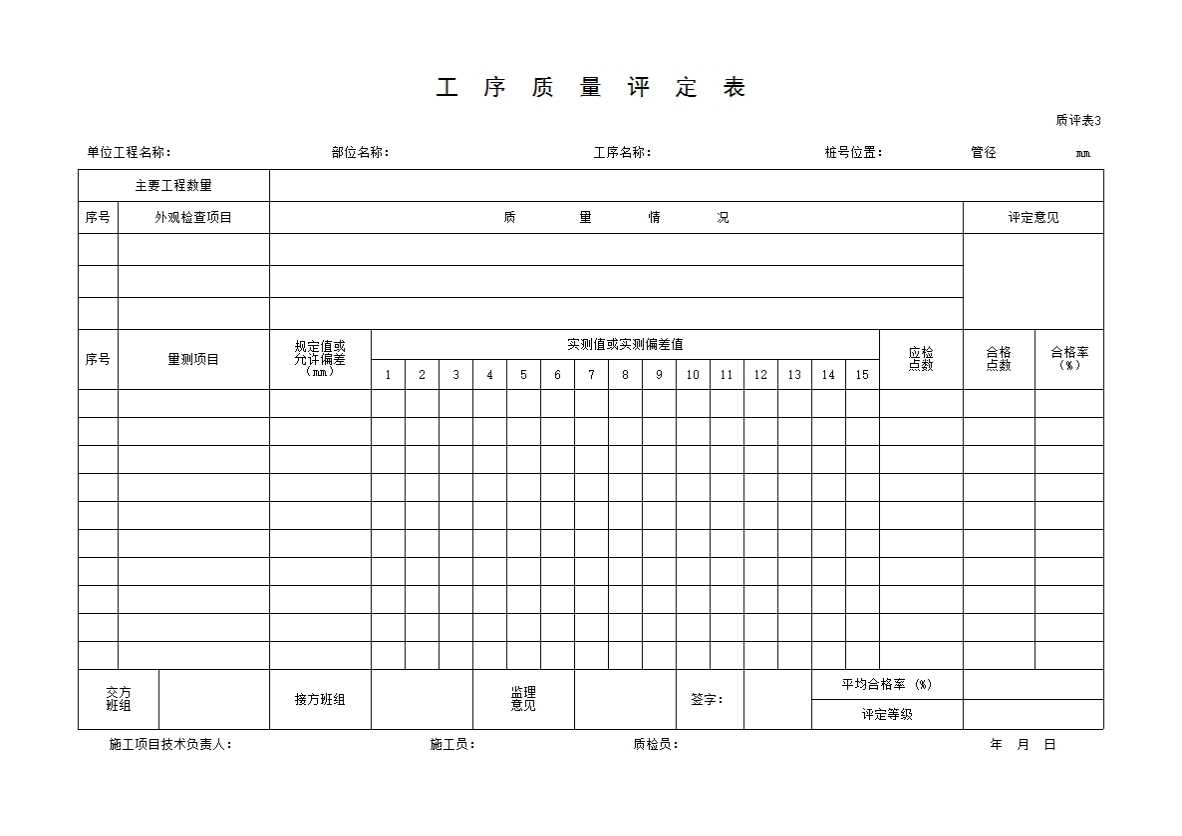 L 基础设施工序质评表