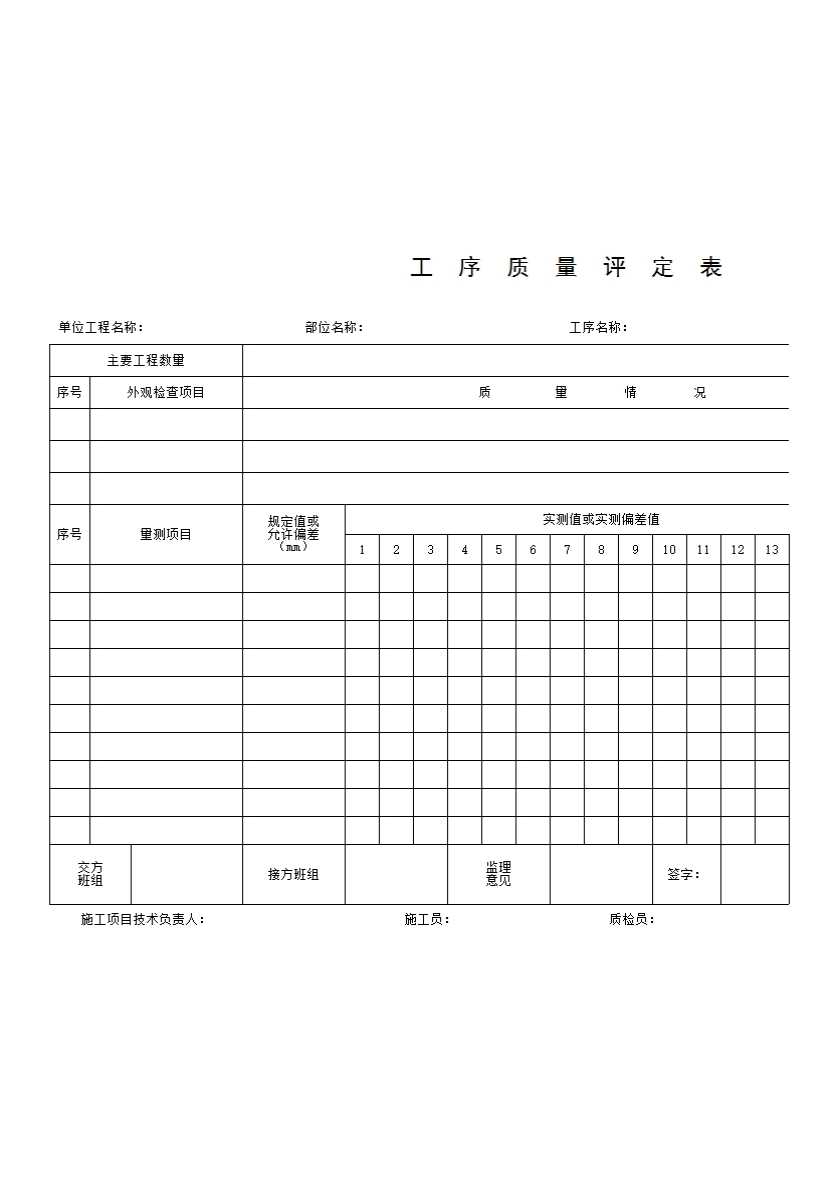 L 基础设施工序质评表