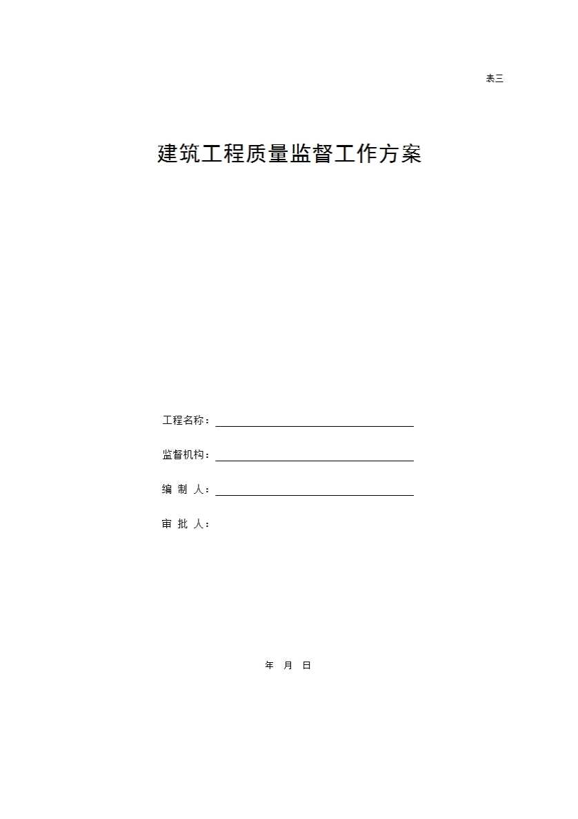 表格名称:4 建筑工程质量监督工作方案 封面(随州)