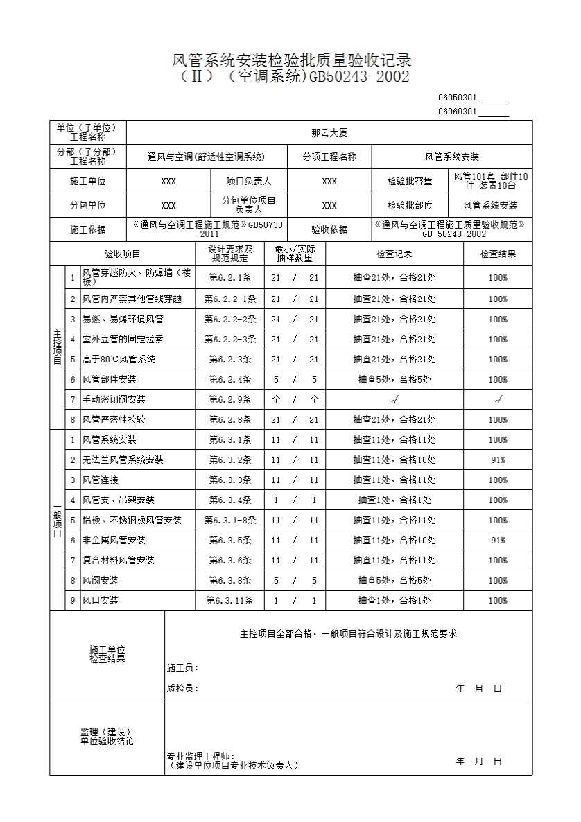 06050301_风管系统安装检验批质量验收记录(Ⅱ)(空调系统)
