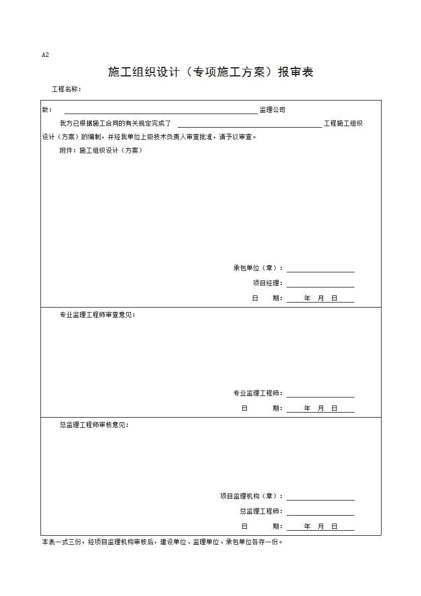 表格名称:A02 施工组织设计(方案)报审表