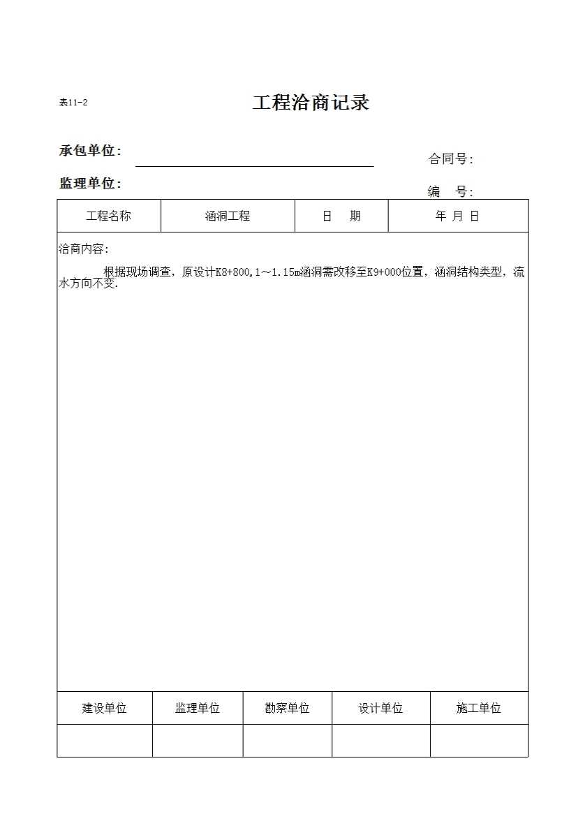 表格名称:表11-2 工程洽商记录
