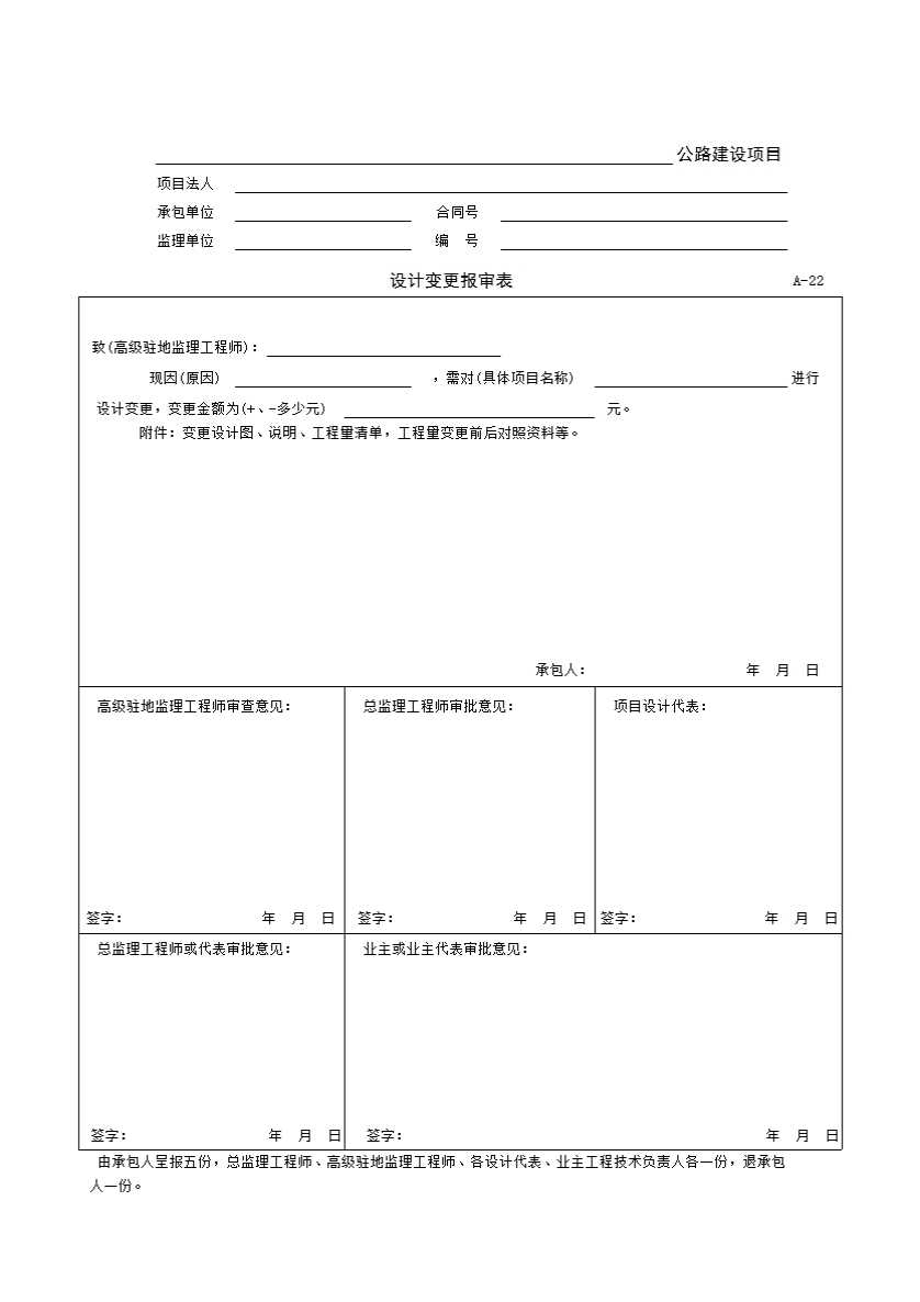 A-22 设计变更报审表