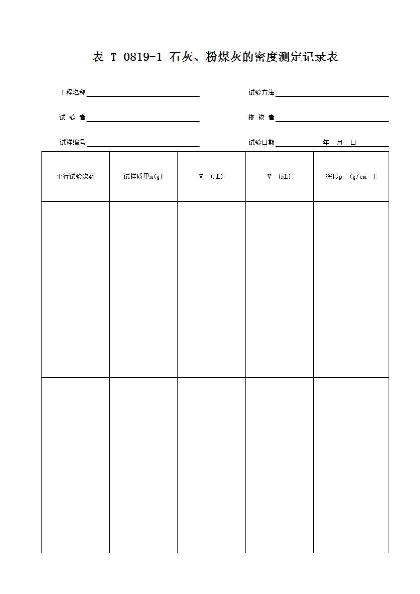 表 T 0819-1 石灰、粉煤灰的密度测定记录表