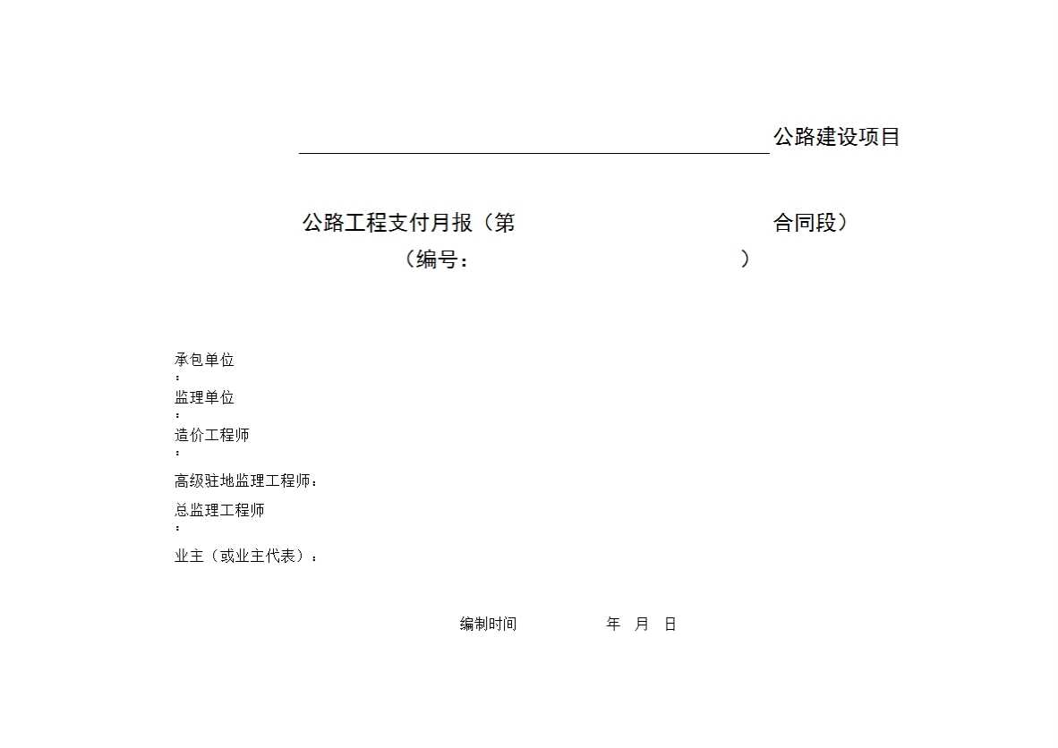 表格名称:公路建设项目