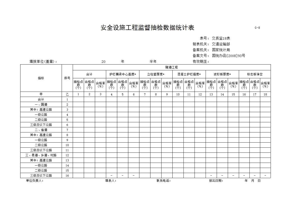 表格名称:G-8表 安全设施工程监督抽检数据统计表
