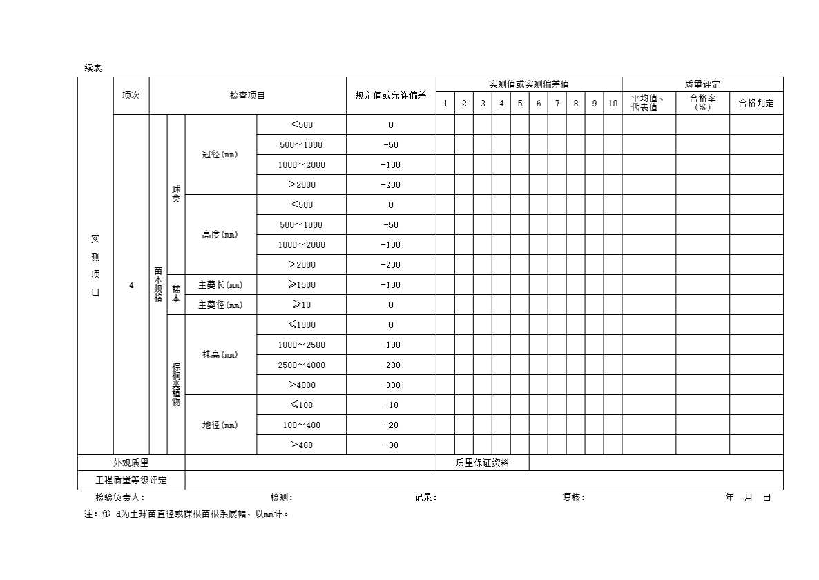 表格名称:树木栽植分项工程质量检验评定表