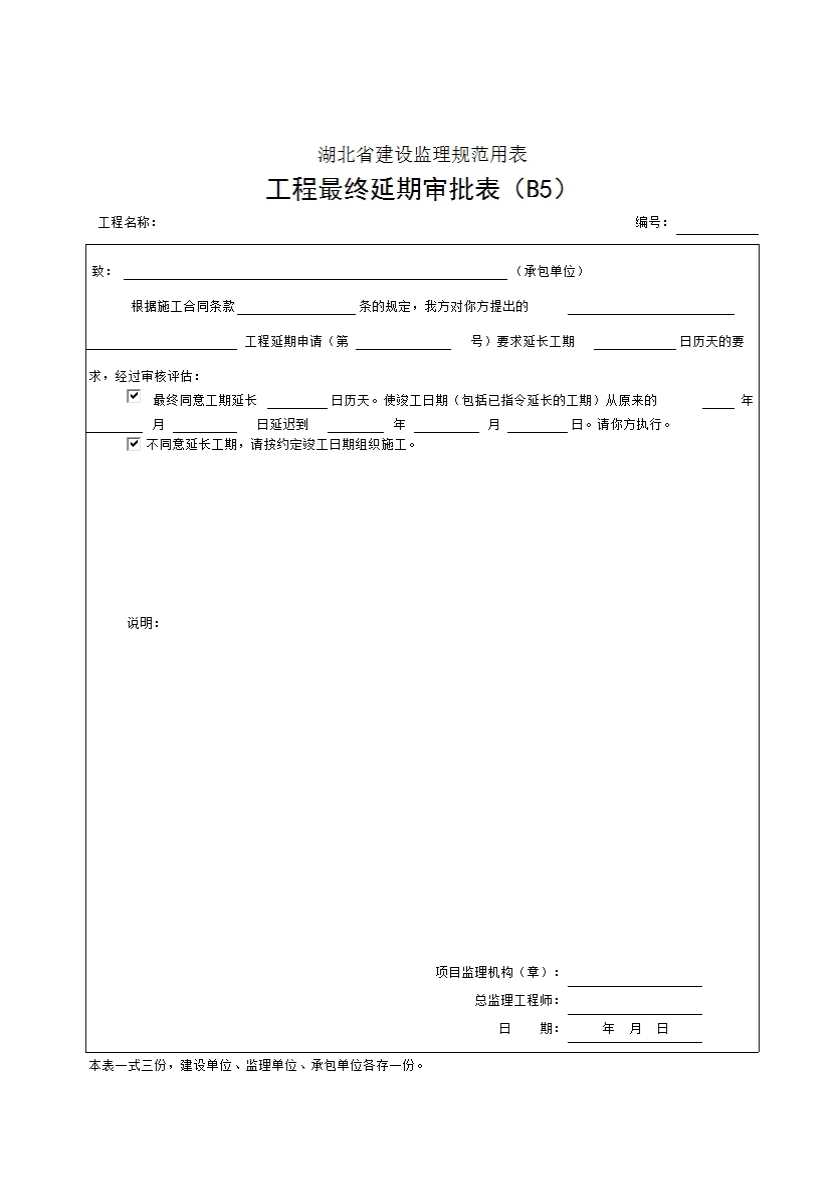 表格名称:B5 工程最终延期审批表