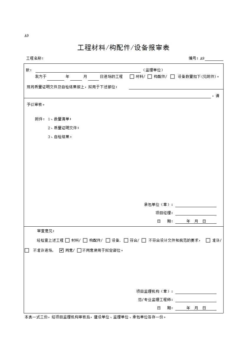 A09 工程材料/构配件/设备报审表