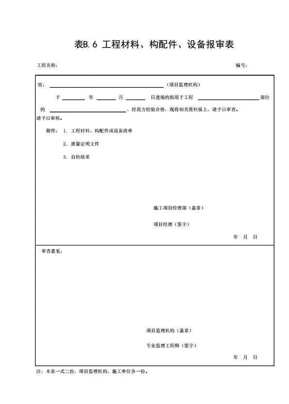 B类表 武汉建设工程监理规程用表(施工单位报审、报验用表)