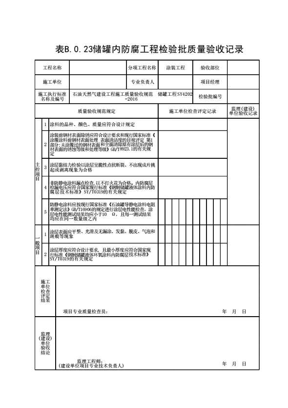 表格名称:内防腐涂料涂装检验批质量验收记录