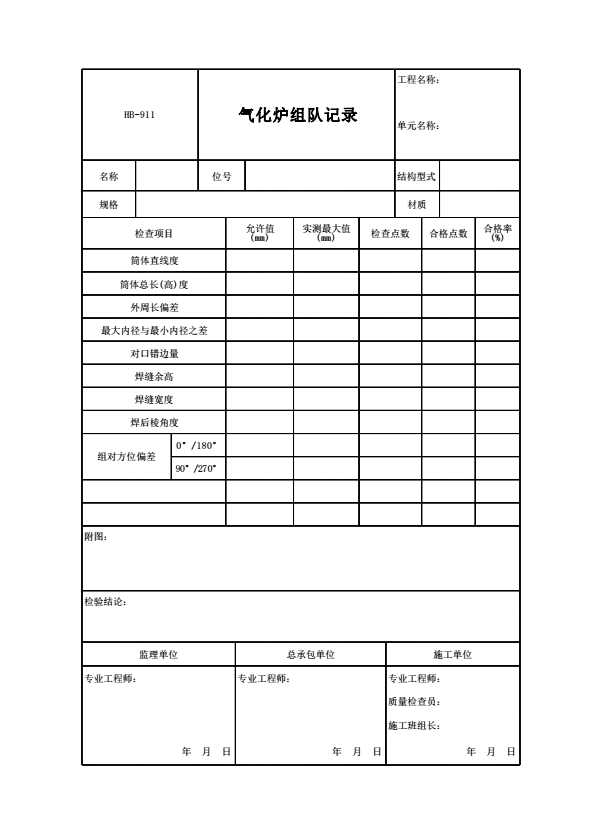 B.9 压力容器、球罐现场组焊类B级交工技术文件表格
