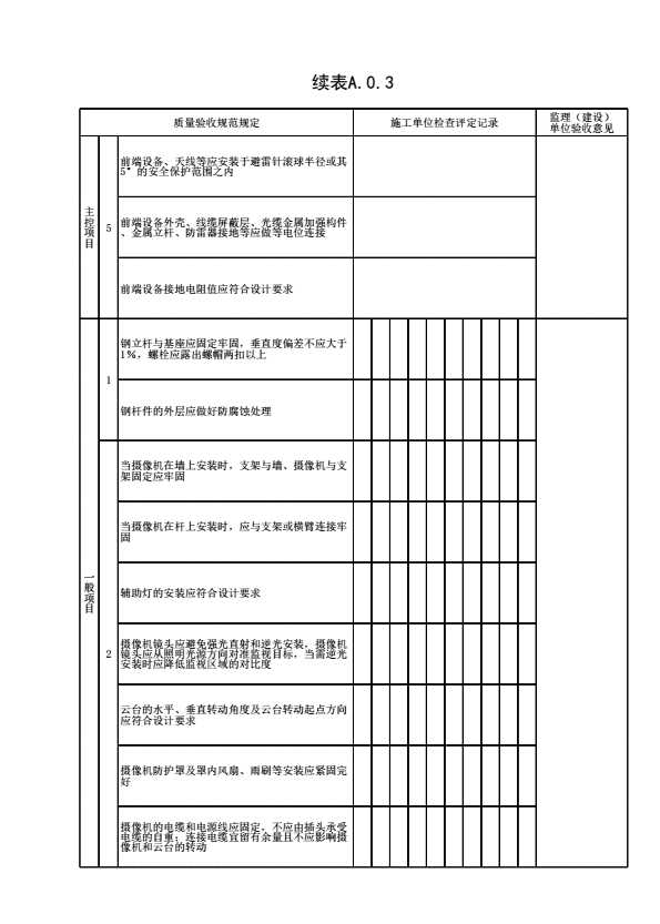 表A.0.3 视频监控前端设备安装检验批质量验收记录