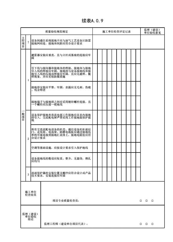 表格名称:表A.0.9 设备间防雷与接地检验批质量验收记录