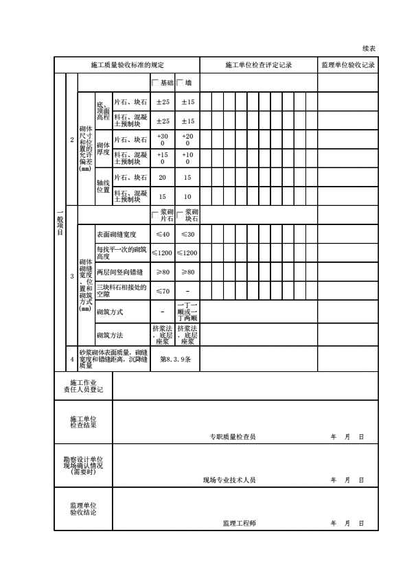 表格名称:【砌体工程】砌体砌筑检验批质量验收记录(Ⅱ)