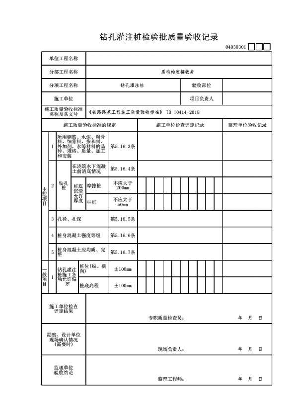 表格名称:04030301 钻孔灌注桩检验批质量验收记录