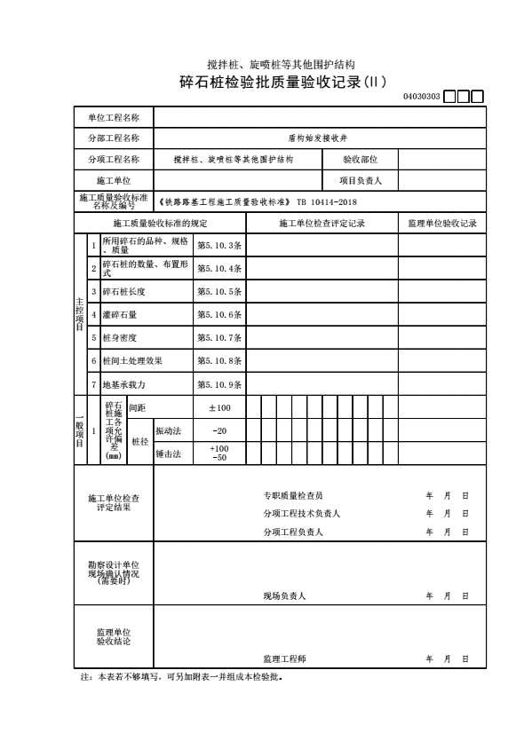 表格名称:04030303 【搅拌桩、旋喷桩等其他围护结构】碎石桩检验批质量验收记录(Ⅱ)