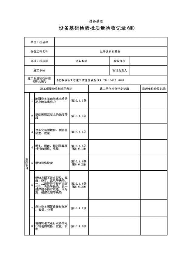 表格名称:【设备基础】设备基础检验批质量验收记录(Ⅷ)