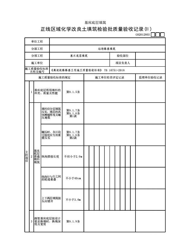 表格名称:G02012803 【基床底层填筑】正线区域化学改良土填筑检验批质量验收记录(Ⅱ)