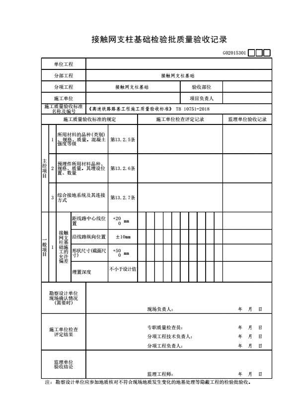 表格名称:G02015301 接触网支柱基础检验批质量验收记录