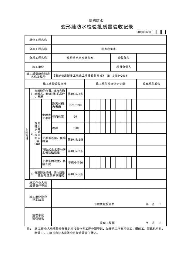 G04020608 【结构防水】变形缝防水检验批质量验收记录