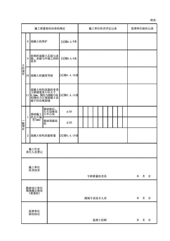 表格名称:03020202 混凝土施工检验批质量验收记录(Ⅲ)