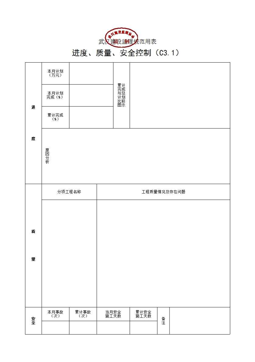 表格名称:C3.1 进度、质量、安全控制