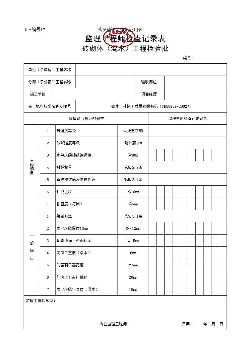 武汉建设监理规范用表