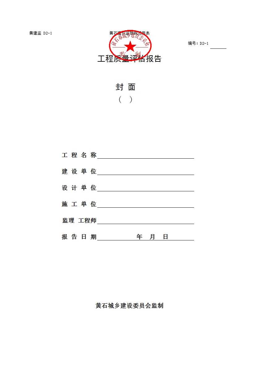 表格名称:D2-1 ____工程质量评估报告(封面)