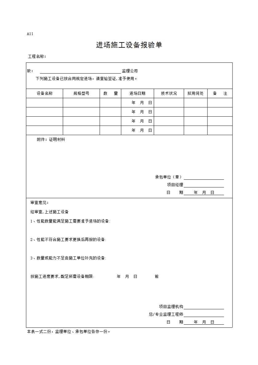 A11 进场施工设备报验单