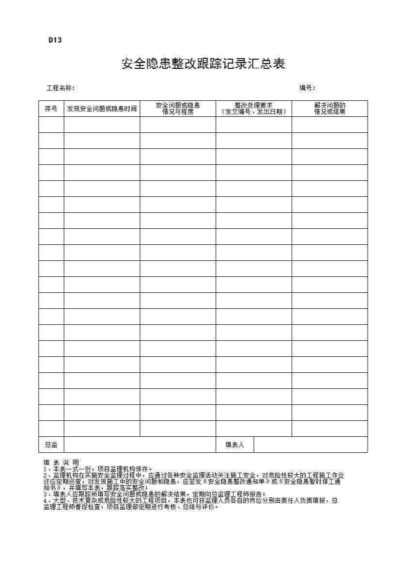 表格名称:D13 安全隐患整改跟踪记录汇总表