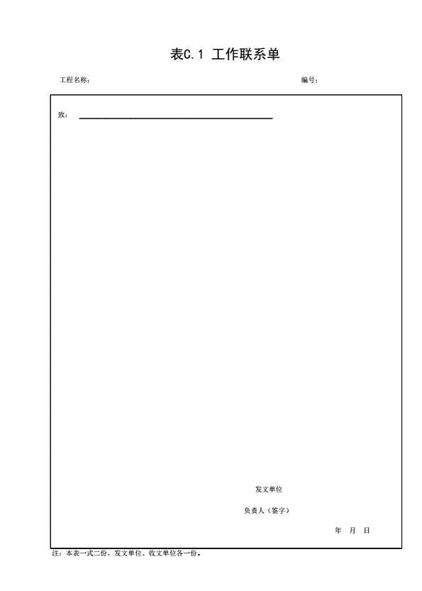 表格名称:C.1 工作联系单