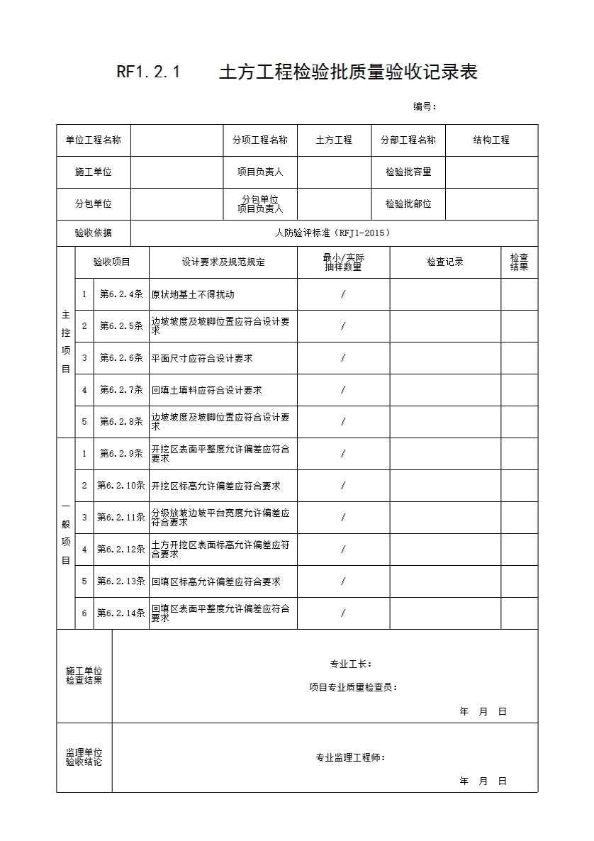 RF1.2.1 土方工程检验批质量验收记录表