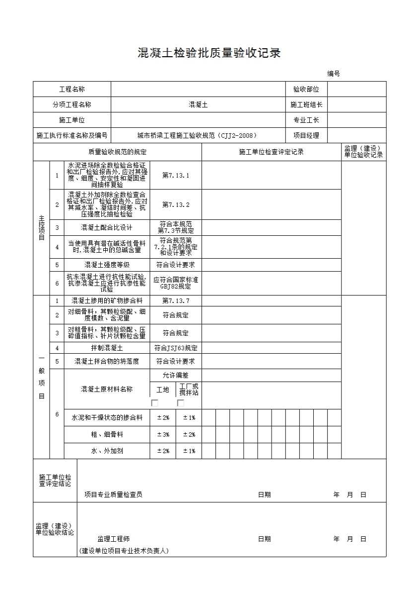 城市桥梁工程施工质量验收表格(CJJ2-2008)