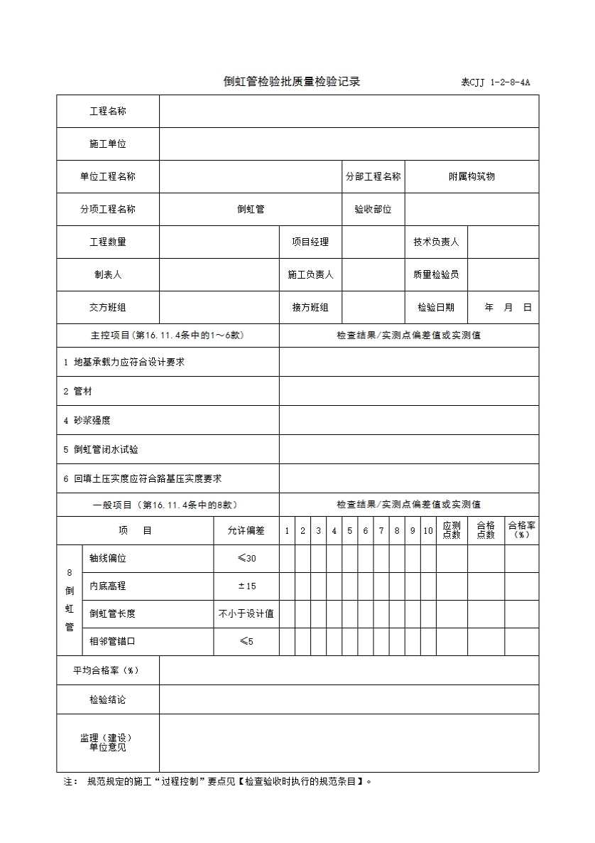 表CJJ 1-2-8-4A 倒虹管检验批质量检验记录