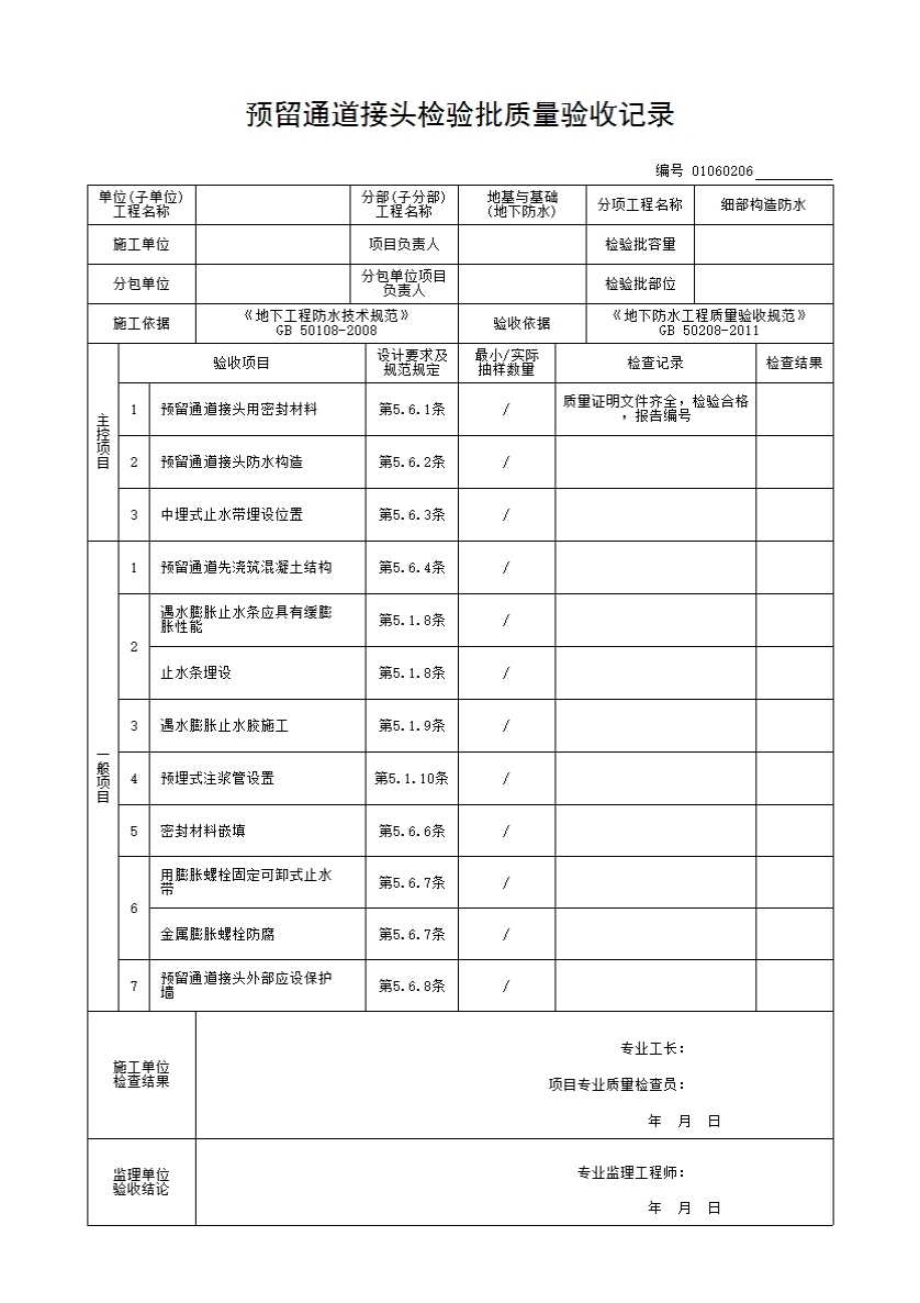 5.6.1 预留通道接头用中埋式止水带、遇水膨胀止水条或止水胶、预埋注浆管、密封材料和可卸式止水带必须符合设计要求。