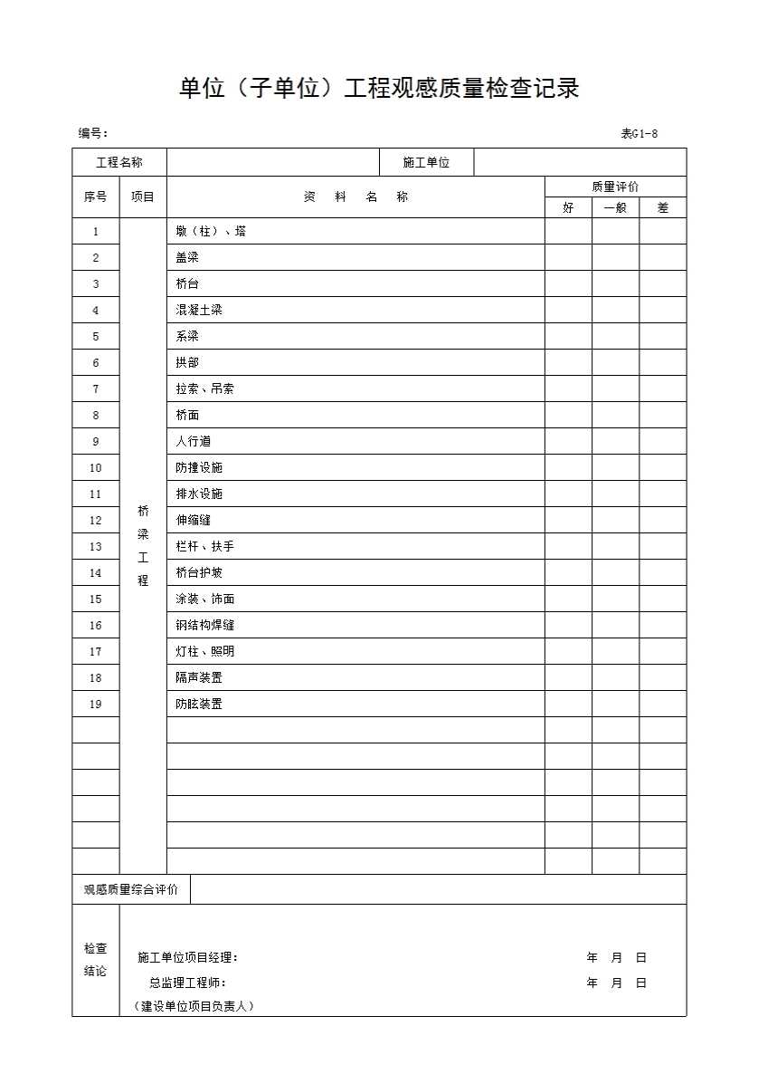 G1 桥梁工程施工质量验收通用表