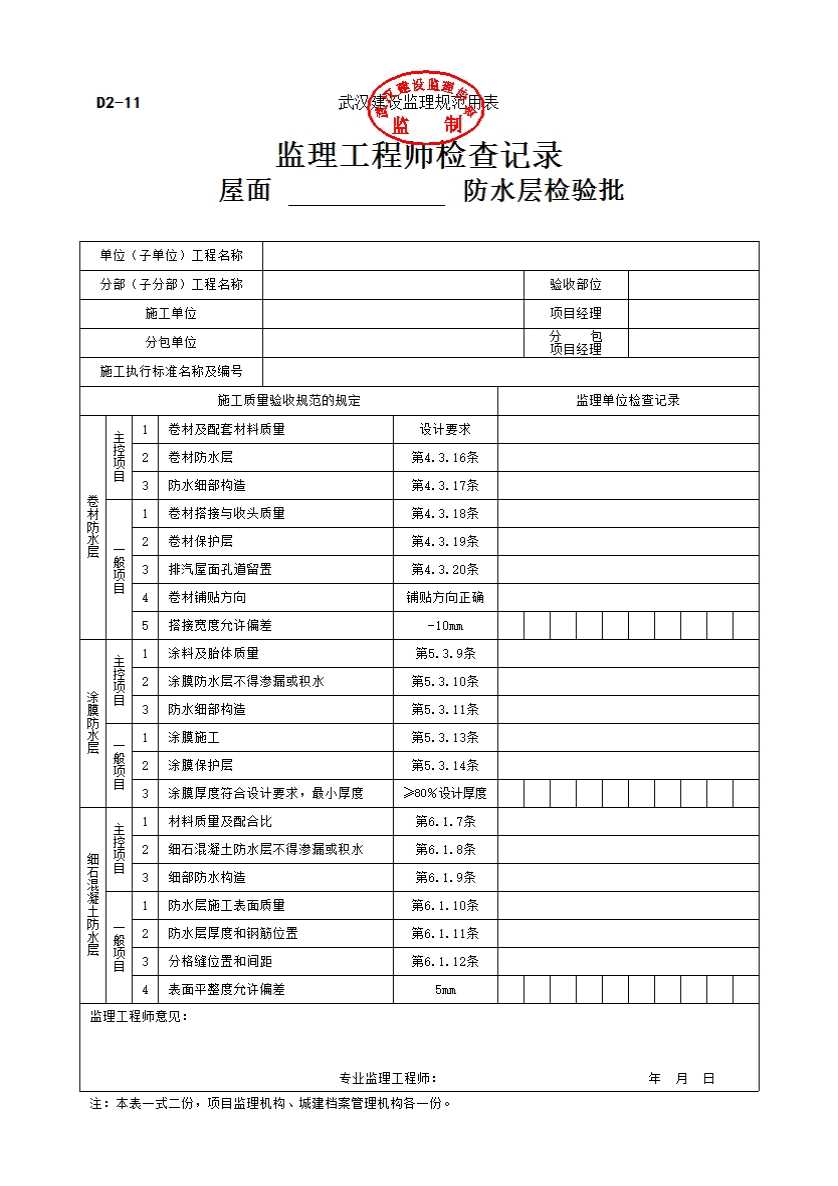D2-11 屋面______防水层检验批监理工程师检查记录