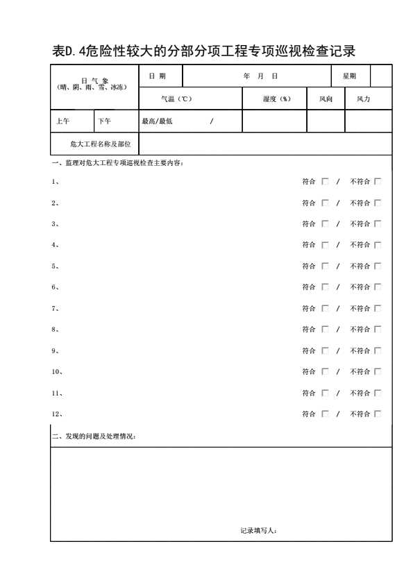 D.4 危险性较大的分部分项工程专项巡视检查记录