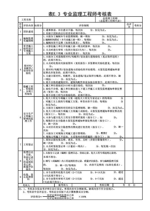 表格名称:表E.3 专业监理工程师考核表