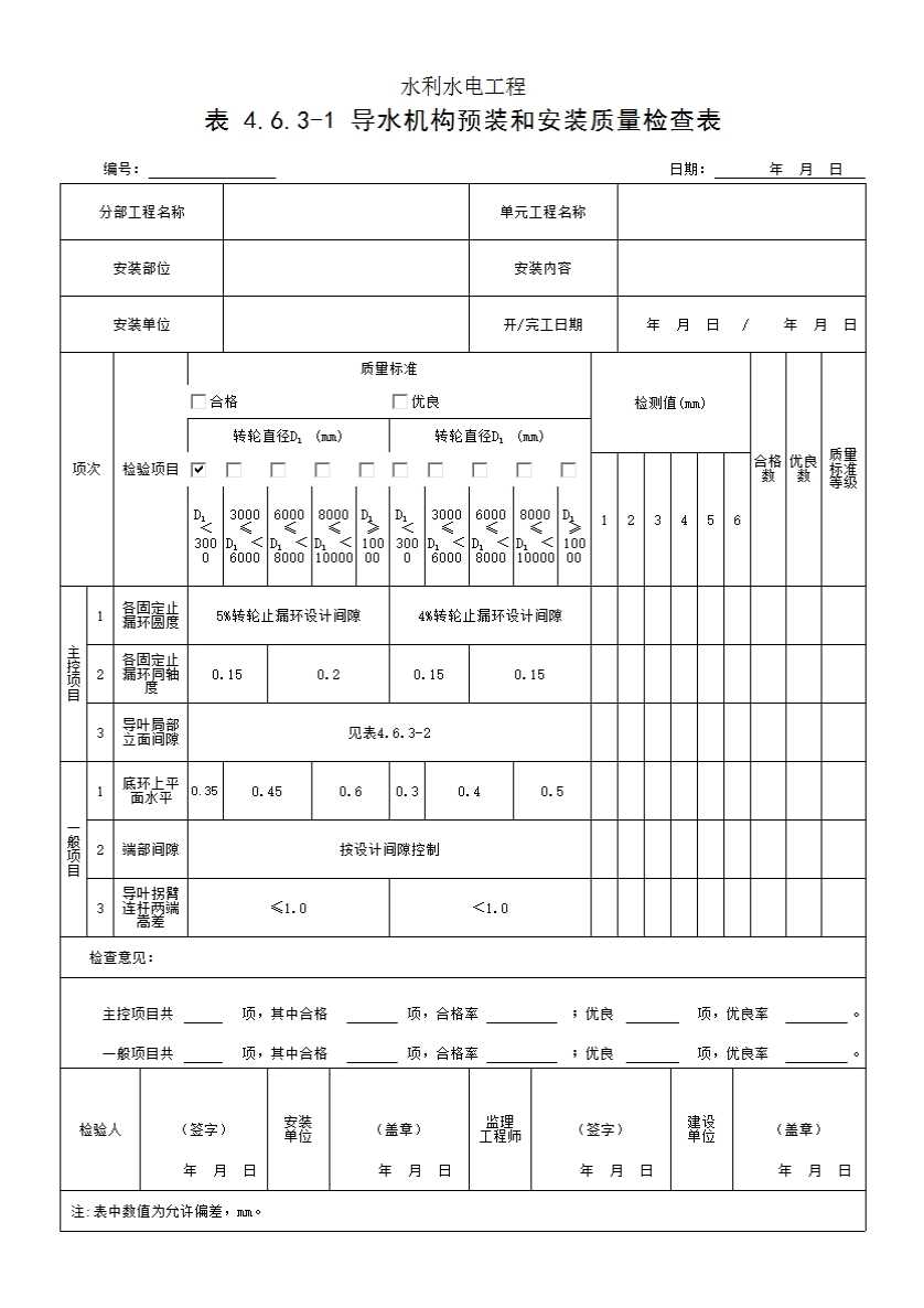 表格名称:表 4.6.3-1 导水机构预装和安装质量检查表