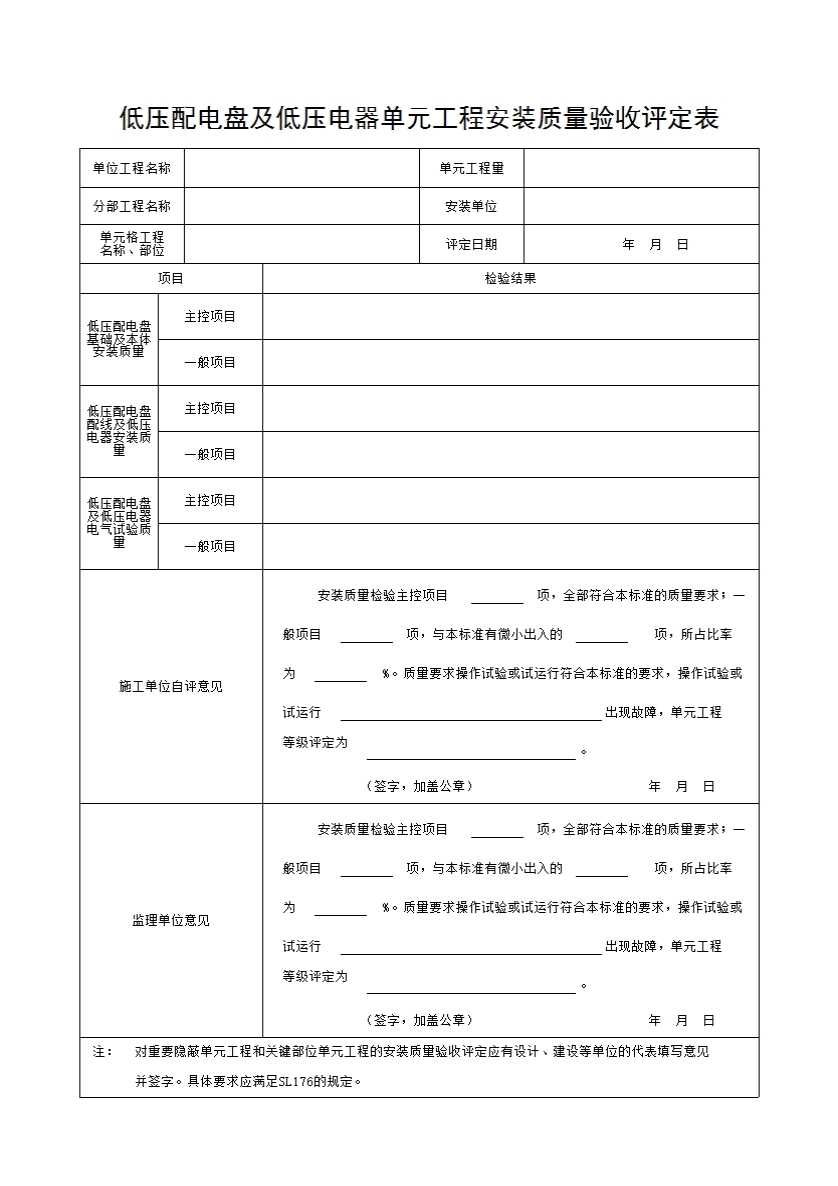 低压配电盘及低压电器单元工程安装质量验收评定表