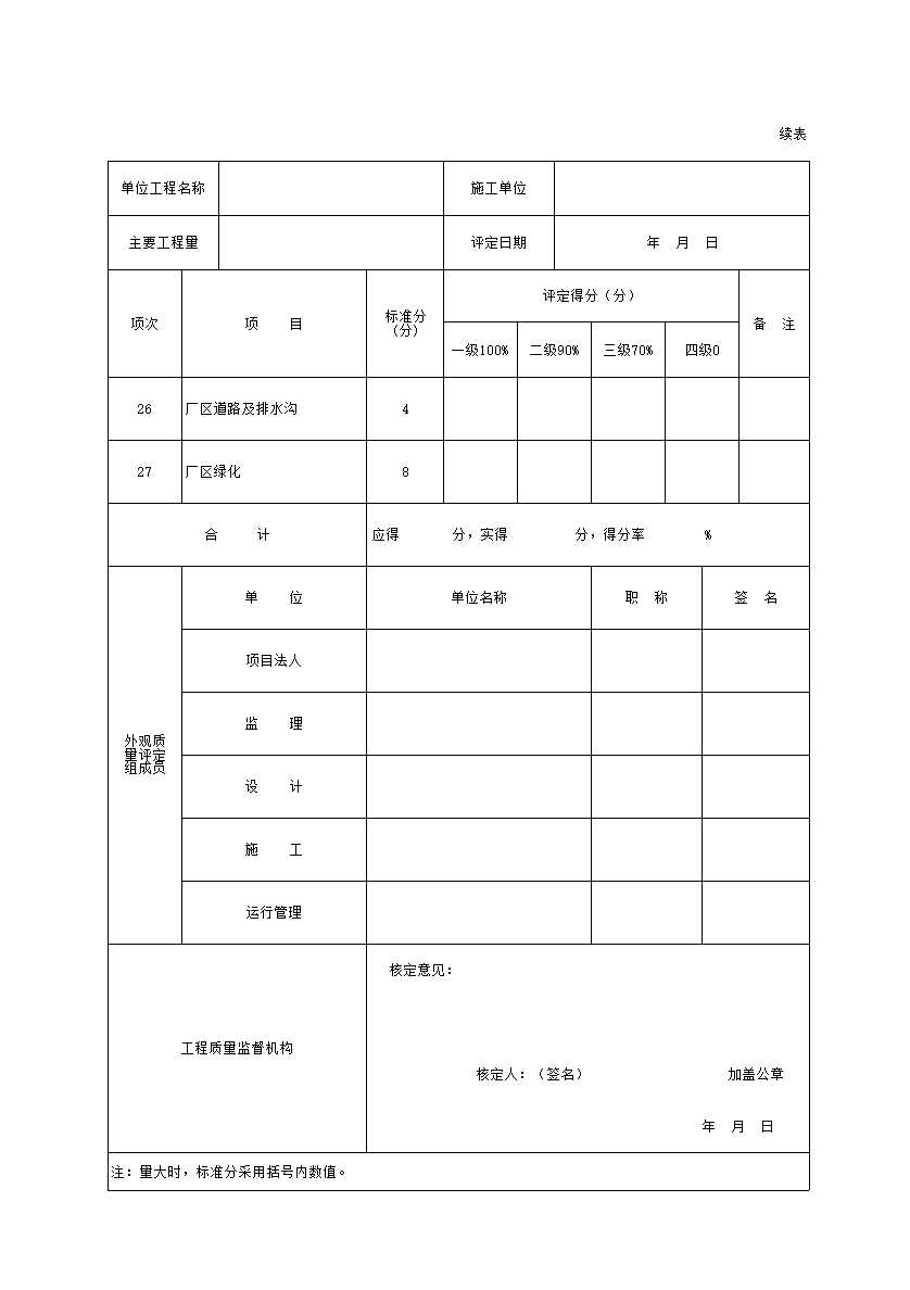 表格名称:表A.2.1 水工建筑物外观质量评定表